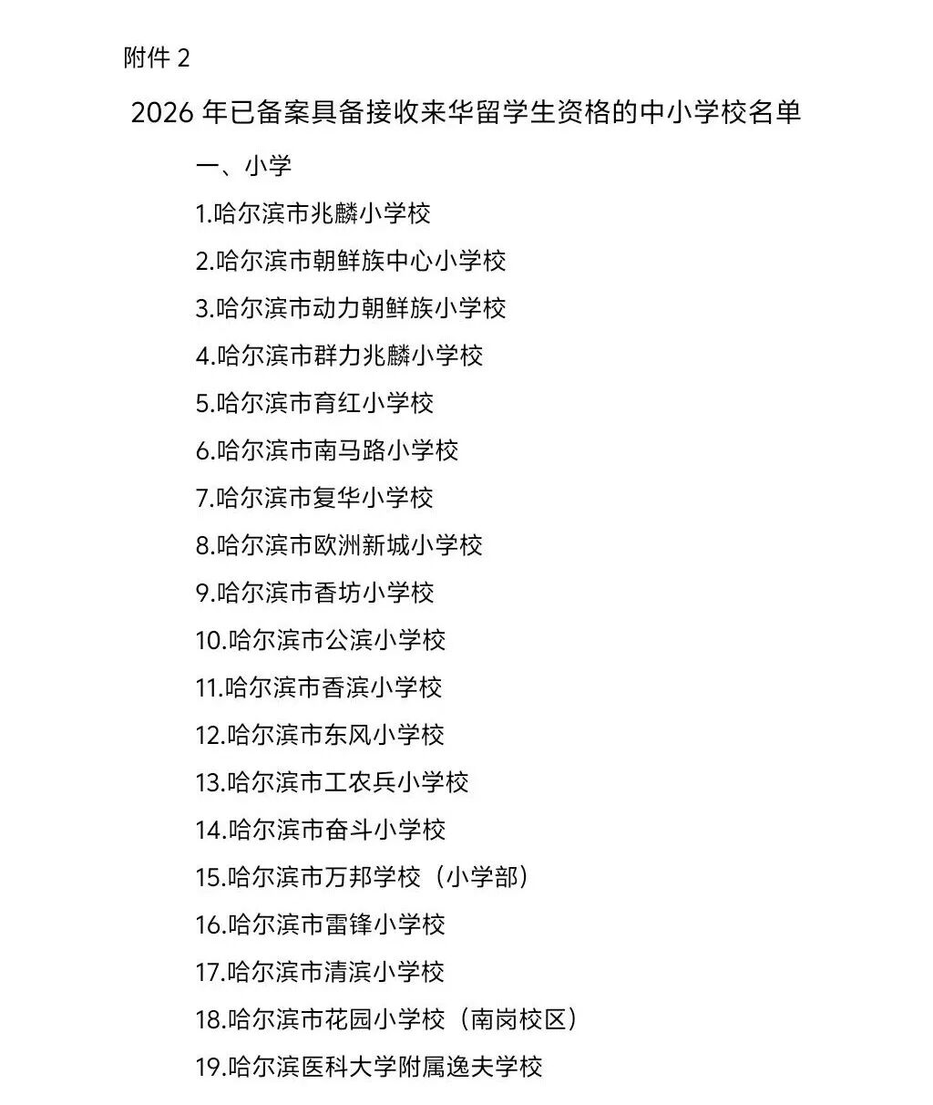 1.招生对象。2026年小学招生入学对象为年满6周岁(2019年9月1日—2020年8月31日出生)、具有哈尔滨市常住户籍或在哈尔滨市居住且符合在哈尔滨市就读条件的适龄儿童。适龄儿童因身体状况等特殊原因需延缓入学的,应由其法定监护人向其户籍地所在学区公办小学提出推迟一年入学的申请,由学校报所在区县(市)教育局批准后,方可延缓入学。延缓入学期满,没有特殊原因的应及时入学,确需继续延缓入学的,要继续提出申请并经批准后,方可继续延缓入学。已申请延缓入学儿童,入学时与所在学区内其他儿童享受同等入学资格;未按时提出申请,擅自延缓入学的超龄儿童,由区县(市)教育局统筹安置入学。
