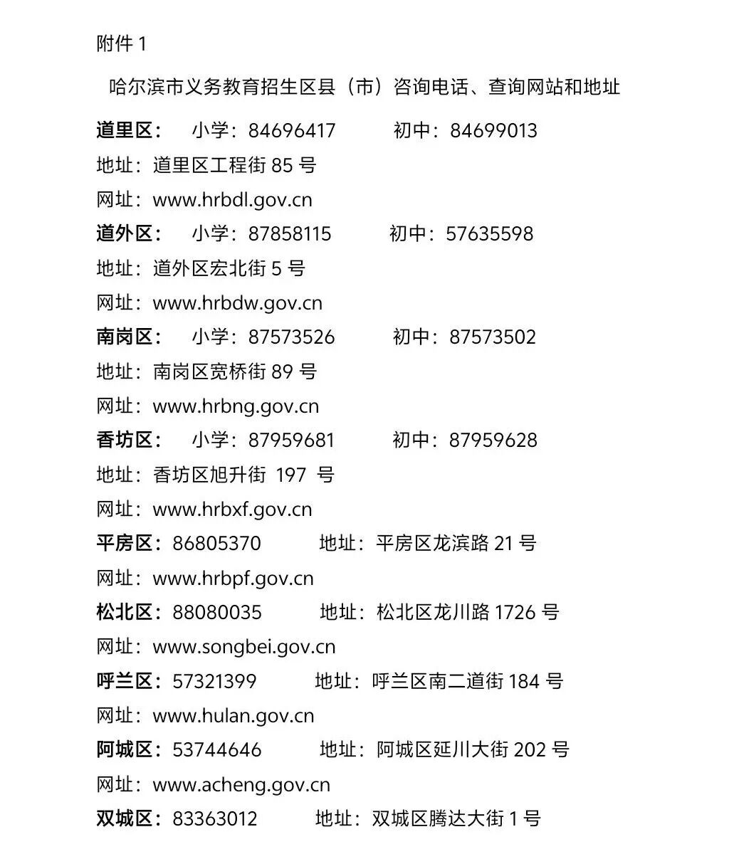 按照教育部《关于进一步做好普通中小学招生入学工作的通知》(教基厅〔2022〕1号)要求,哈尔滨市教育资源相对均衡的区域,依然实行单校划片,合理稳定就学预期。学位资源短缺的区县(市)要综合采取有力措施,因地制宜、因校施策,“一区一策”实施符合本区县(市)实际的招生方式。